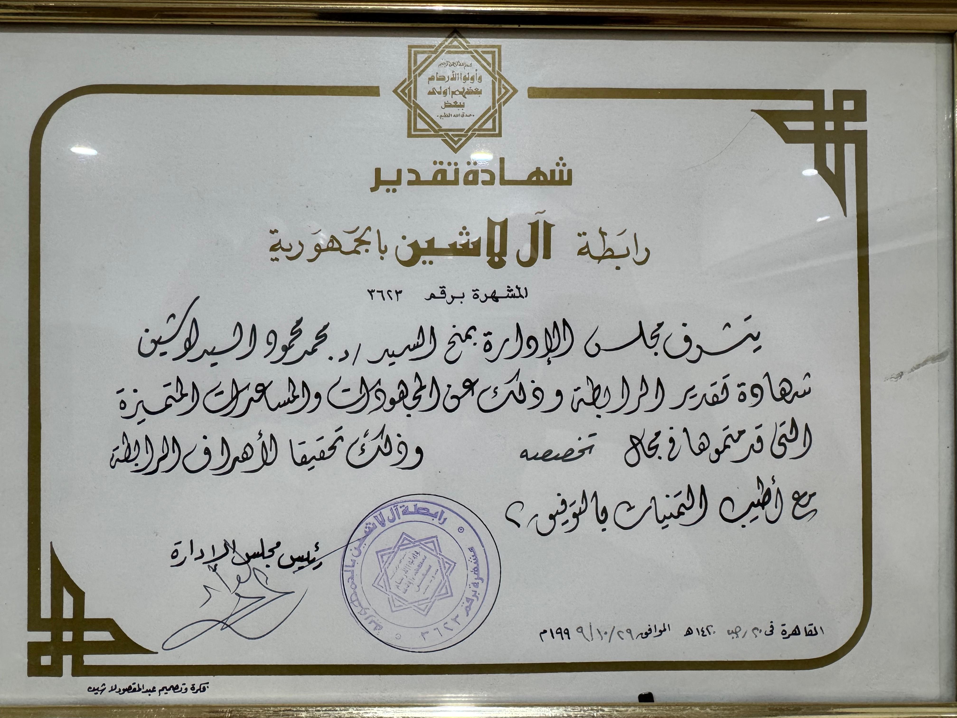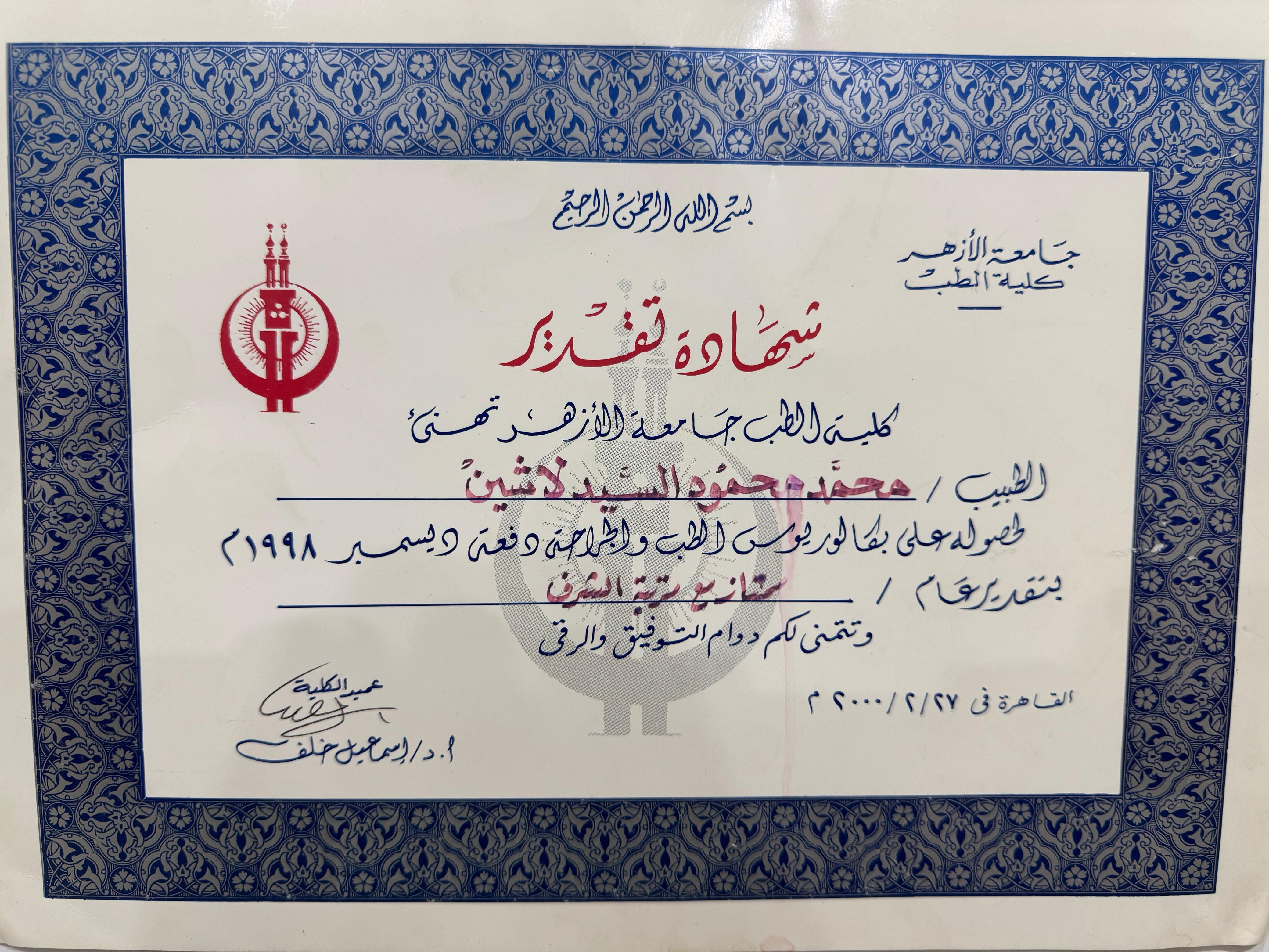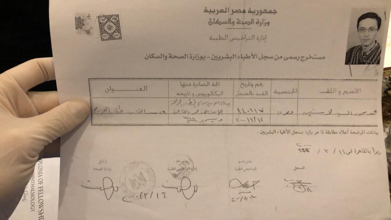 - دكتوراه طب وجراحة العيون - زميل كلية الجراحين الملكيه بإنجلترا